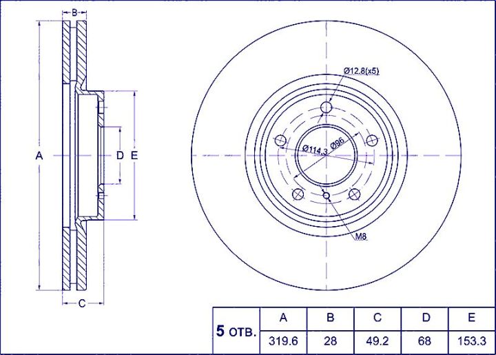 Диск тормозной /передний /TI-GUAR для Nissan Murano Z50 2004- Infiniti FX35/45 2004-2005; 320/28мм; TG-40206-EG000 PD3210631S 0986479R22 09B26610 24012801531